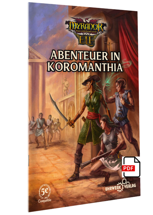 Abenteuer in Koromanthia ist eine Abenteueranthologie für Myranor ELF 5e, 56 Seiten PDF, vollfarbig