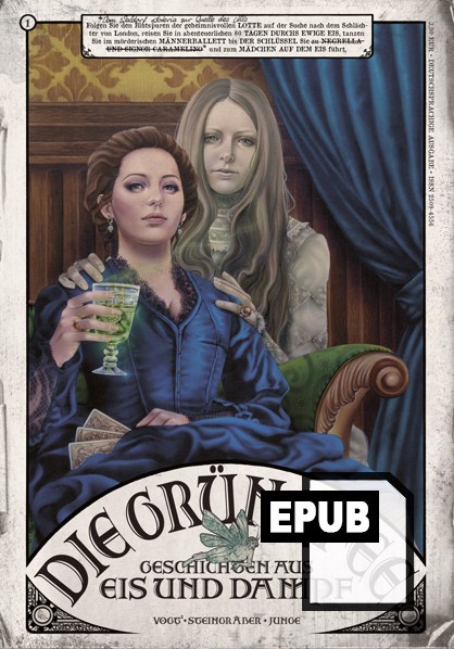 Die Grüne Fee, der krea­tive Geist im Ab­sinth, leiht die­sem zeit­ge­nös­si­schen Gro­schen­heft ih­ren be­rühmt-be­rüch­tig­ten Na­men. Las­sen Sie sich von aben­teu­er­li­chen Ge­schich­ten und phan­tas­ti­schen Il­lus­tra­tio­nen nicht nur in die Hoch­zeit des Ab­sinths ent­füh­ren, son­dern auch in die Eis­zeit. Die al­ter­na­tive Welt von Eis und Dampf er­war­tet Sie!