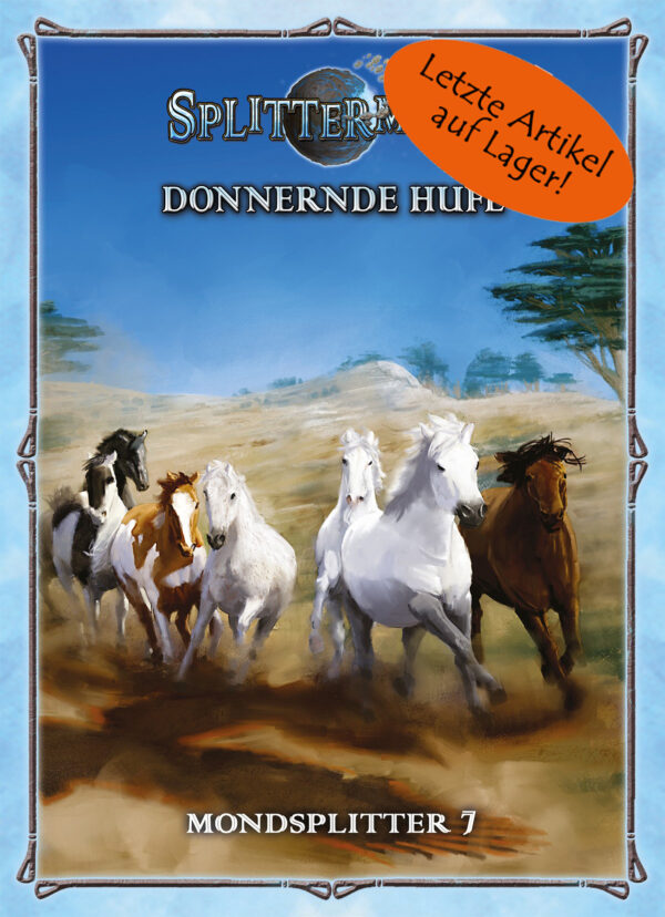 Donnernde Hufe ist ein Abenteuer aus der Reihe der Mondsplitter, kurzer und spielfertig aufbereiteter Abenteuer für ein bis zwei Spielabende. Ein Mondsplitter zeichnet sich dadurch aus, dass er durch seine Kürze und die Aufbereitung der Informationen nur geringe Vorbereitungszeit benötigt. Alle Abenteuer dieser Reihe nutzen die vereinfachten Regeln aus der Splittermond Einsteigerbox, können aber auch mit geringem Aufwand an das vollständige Regelwerk angepasst werden.