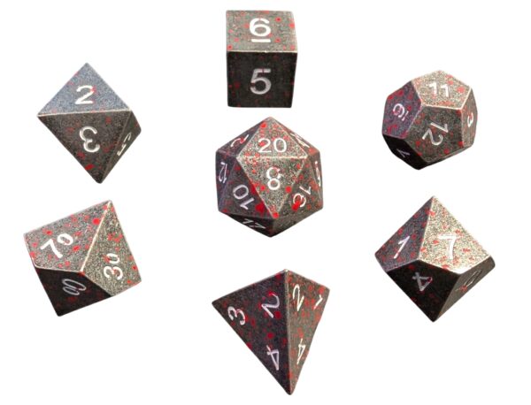 Metall-Würfelset, bestehend aus je einem W4, W6, W8, W10, W00, W12 & W20.