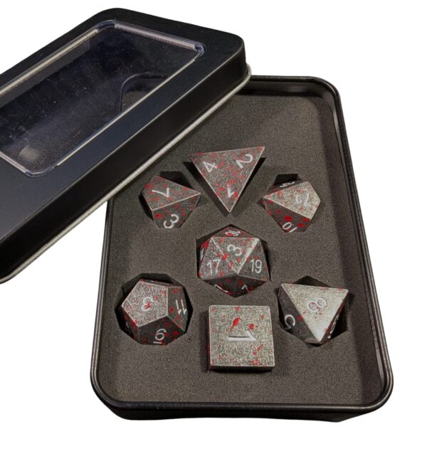 Hochwertiges Metallwürfelset in repräsentativer Verpackung, ideal als Geschenk, auch an dich selbst 😉