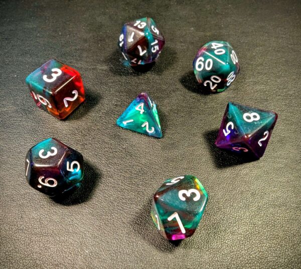 Würfelset, bestehend aus je einem W4, W6, W8, W10, W00, W12 & W20.